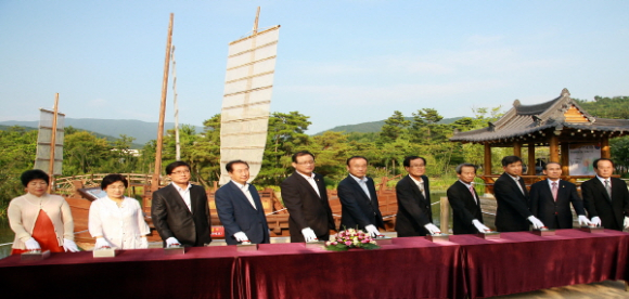 안압지 축소한 계림지에 ‘장보고 교관선’ 진수 최양식 시장 등 경주 기관단체장 50여명 참석 2011경주세계문화엑스포 준비상황보고회 개최