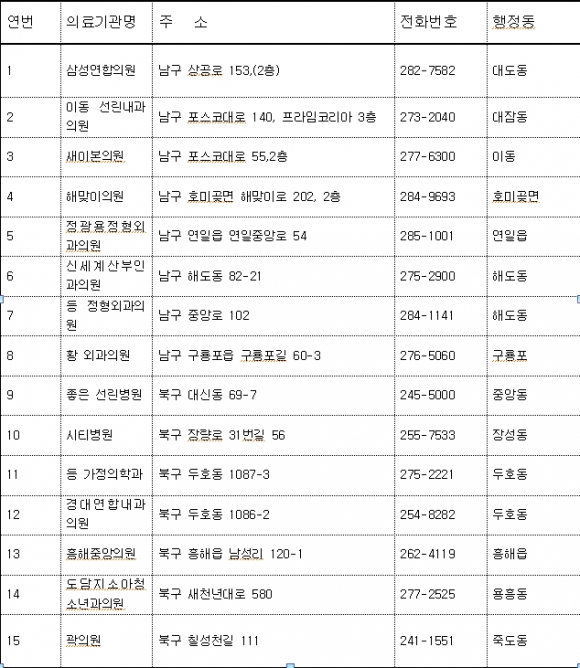 북구 소재 8개소, 남구 소재 7개소 총 15개소 운영