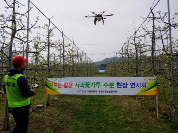 14일 산딸기 방제, 15일 사과 꽃가루 인공수분, 다양한 드론활용 시연