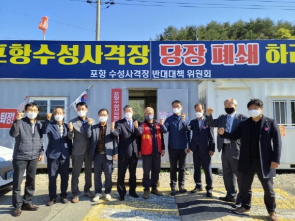 포항시 이․통장연합회 황상모 회장과 임원들은 14일 수성사격장 반대대책위원회 사무실에서 권수문 장기면 이장협의회장, 조현측 수성사격장 반대대책위원장 등을 만나 위로하고 미군 아파치헬기 사격훈련이 완전히 중단될 수 있도록 적극 힘을 보태기로 했다.