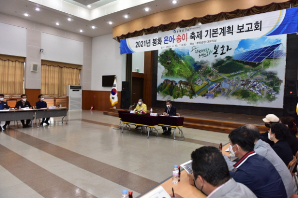 |  | | | ⓒ GBN 경북방송 | | (재)봉화축제관광재단은 19일 오후 2시 군청 대회의실에서 2021년 봉화 은어‧송이 축제의 성공적 개최를 위한 기본계획 보고회를 개최했다. 이날 보고회에서는 금년도 봉화 은어‧송이 축제 기본계획 보고 후 축제의 발전적 개최를 위한 혁신적이며 실효성 있는 다양한 축제 프로그램 토론 및 제안이 제시되었다.