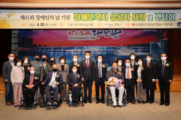 |  | | | ⓒ GBN 경북방송 | | 포항시는 20일 제41회 장애인의 날을 기념해 장애인복지 유공자 표창패 수여 및 장애인단체장 간담회를 개최했다.