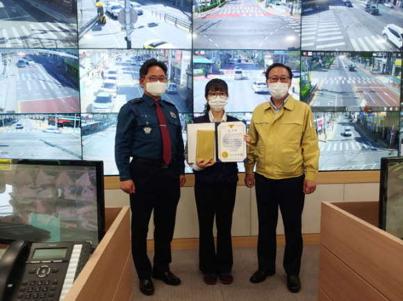 상주시 CCTV통합관제센터 모니터요원이 면밀한 모니터링으로 도난차량 수배범 검거에 기여한 공로로 상주경찰서장으로부터 표창장을 수여받았다.