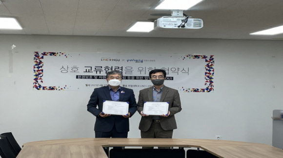 |  | | | ↑↑ 왼쪽부터 정영화 포항시 환경국장, 이종선 한동대학교 링크사업단장 | | ⓒ GBN 경북방송 | | 포항시와 한동대학교 LINC+사업단은 27일 자원보호의 능동적인 대응과 환경문제 해소를 위한 ‘환경보호 및 자원업사이클링 업무협약’을 체결했다. 한동대 산학협력단에서 열린 협약식에는 정영화 포항시 환경국장과 이종선 한동대학교 링크사업단장이 참석한 가운데 양 기관 주요 협력분야에 대한 추진방안 안내, 서명식 순으로 진행됐다.