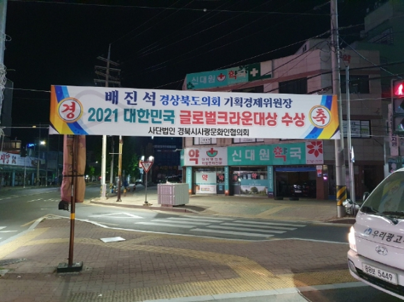 배진석 경북도의회 의원(기획경제위원장)은 지역경제 안정 및 상권활성화에 기여한 공로를 인정받아 ‘2021 대한민국 글로벌크라운대상’ 지방자치부문 대상을 수상했다.