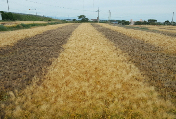 |  | | | ⓒ GBN 경북방송 | | 포항시농업기술센터는 호미곶면 대보리 일원에 17ha(5만 평)의 유색보리(청·흑·자색) 경관농업단지를 조성했다.
