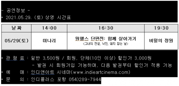 인디플러스 포항 단단한영화展 ‘원 헬스 단편전 : 함께 살아가기’ 개최