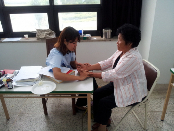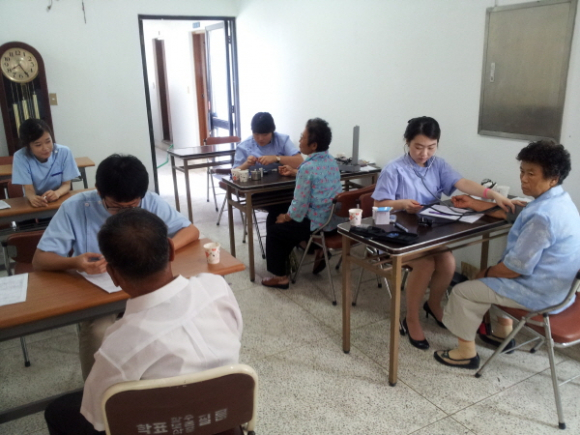 찾아가는 무료 한방진료 봉사팀으로 의료취약지역의 주민들에게 혈압, 혈당검사 등 검진에서 대상자의 몸 상태에 따라 한방치료를 받았으며, 진료결과에 따라 기본진료와 고된 농사일 등으로 허리, 어깨, 팔다리 통증으로 관절염 등 고질병을 앓는 어르신들에게 침 뜸, 부황 등의 한방진료를 하고 약물치료가 필요한 어르신들에게는 한약도 무료로 제공했다.