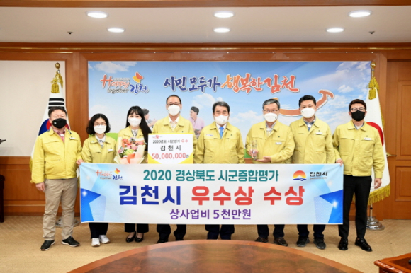 김천시(시장 김충섭)는 5월 18일 경상북도에서 23개 시·군을 대상으로 실시한 2020년도 시군종합평가에서 우수시로 선정되어 상사업비 5천만원과 포상금 1천만원을 수상했다.
