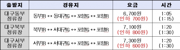 - 대구↔포항 이용승객 시간 및 운임 줄어, 경제적 부담감소 -