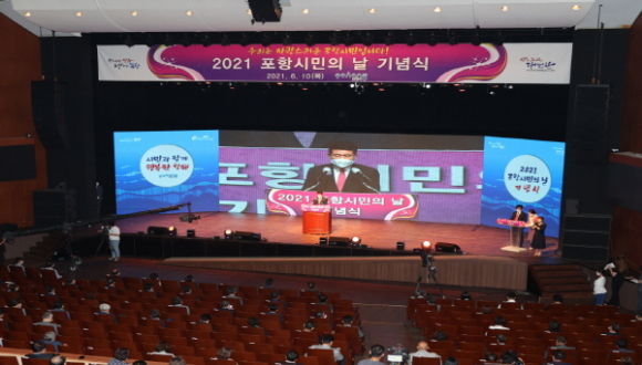 포항시는 10일 포항문화예술회관에서 시승격 72주년을 맞아 각계각층 시민대표 200여 명이 참석한 가운데 ‘2021 포항시민의 날 기념식’을 가졌다.
