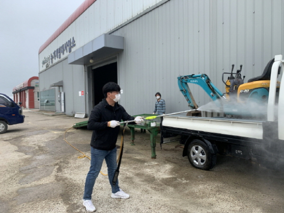 포항시농업기술센터 , 과수 화상병 예방을 위한 임대농기계 소독실시