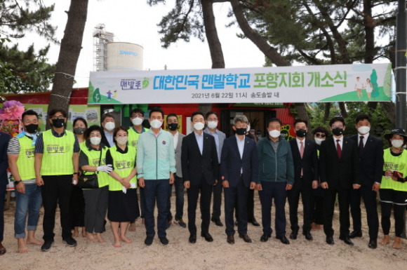 맨발학교 포항지회는 22일 포항시 남구 송도동에서 사무실 개소식을 가졌다.