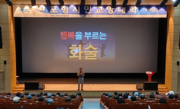 포항시는 23일 뱃머리 평생학습원 덕업관 대강당에서 성우 배한성 씨를 초청해 6월 ‘시민교양대학’을 개최했다. 이날 강의는 ‘행복을 부르는 화술’ 이라는 주제로 우리의 삶 속에서 말이 얼마나 중요한지를 다양한 사례와 성우 특유의 목소리로 전달하며 참석한 150여 시민들의 많은 박수와 호응을 얻었다.