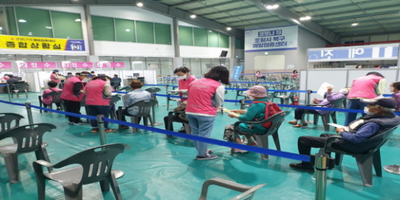 포항시 75세 이상 어르신 백신 접종은 남·북구 예방접종센터(남구 포항체육관, 북구 양덕한마음체육관)에서 화이자 백신으로 2차에 걸쳐 진행됐다.