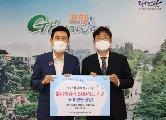 대한치과보철학회 경북지부(회장 김경탁, 이하 학회)는 7월 1일 틀니의 날을 기념해, 포항시에 틀니세정제 600세트(600만 원 상당)를 기증했다.