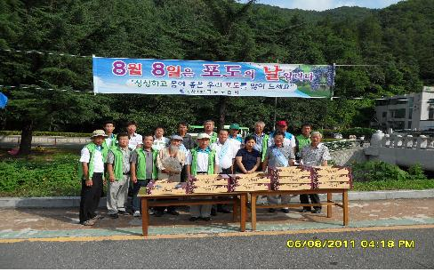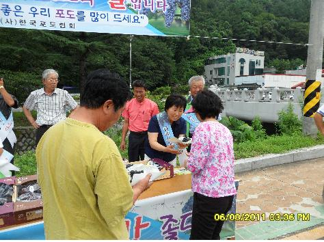 8월 8일 포도의 날을 맞아 한국포도회(회장 오인길)와 김천포도회(회장 편재관)는 8월6일 대항면 직지사입구 공영주차장에서 한국포도회원 및 김천포도회 이사 50여명이 참석한 가운데 포도 무료 시식 행사를 가졌다.