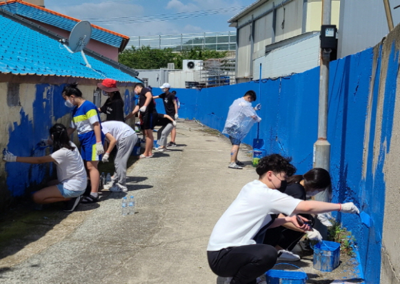 삼정1리 주민과 포항 시민이 함께 참여해 노후 담벼락 페인팅 실시