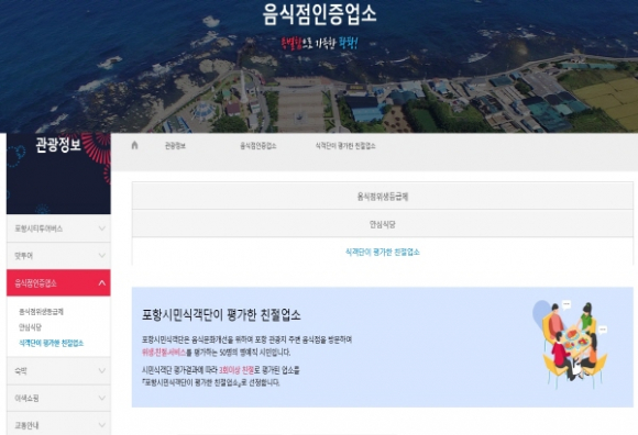 |  | | | ↑↑ 식객단이 평가한 친절업소(포항시홈페이지) | | ⓒ GBN 경북방송 | |
