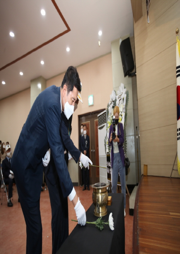 이번 추념식은 코로나19 확산으로 사회적 거리두기 3단계가 지속됨에 따라 행사 참석인원을 50명 미만으로 제한하고, 총괄방역관리책임자 지정 및 안전요원 배치로 발열체크, 마스크 착용, 손 소독, 출입자명부 작성, 좌석 간 거리두기 2m 유지 등 코로나19 방역수칙을 엄격히 준수해 진행됐다.