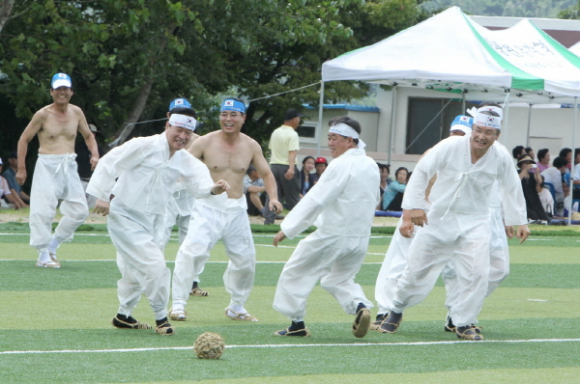 - 제66회 광복기념 제60회 신광면민 축구대회- -짚신 신고 짚축구공을 차며 60여 년 전 경기 '재연'