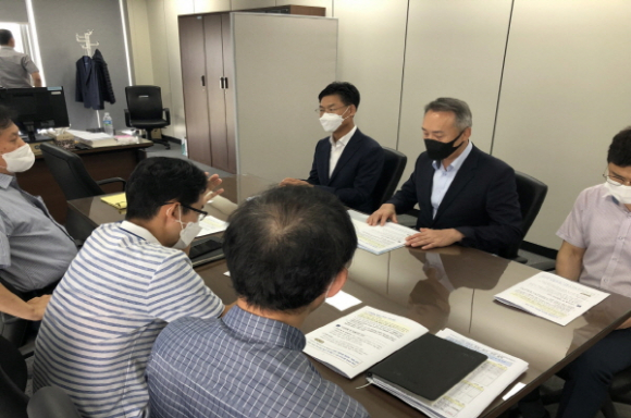 김병삼 포항부시장은 19일 국무조정실 ‘포항지진 진상규명 및 피해구제 지원단’을 방문해 촉발지진 진상조사 결과에 대해 항의했다.