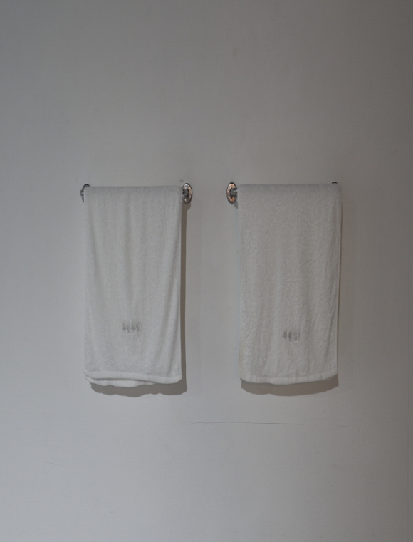 8월, 더위가 불쾌하게 내리는 한여름의 작은 전시장 공간에 여러 대의 가습기가 쉬지 않고 수증기를 뿜어낸다. 가습기가 내쉬는 습한 공기에 젖어 축 늘어진 수건은 공간의 무게와 가습기의 움직임을 담고 있는 듯하다. 그렇지만서도 숨도 쉬기 어려운 무겁고 습한 전시장 안의 공기가 바닷바람을 한껏 머금은 포항의 공기와 비견할 수 있을까?