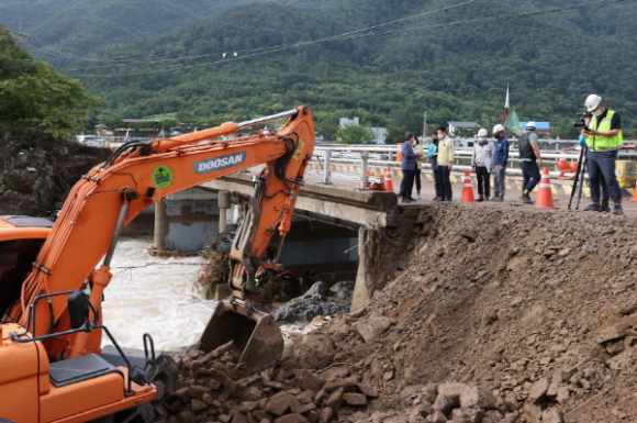포항시는 지난 24일 쏟아진 집중호우로 교량과 연결되는 31번국도 약 40m 도로가 유실됐던 입암2교 교량 일원에 24일 덤프트럭 10대, 굴삭기 4대 등을 동원한 밤샘 복구 작업으로 지반 보강을 완료하고 임시 개통했다고 25일 밝혔다.