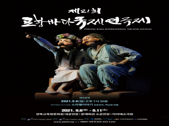 올해로 21회를 맞은 포항바다국제연극제는 6일부터 11일까지 경북교육청문화원 대공연장, 문예회관 소공연장. 아라떼소극장에서 6일간 펼쳐질 예정이다.
