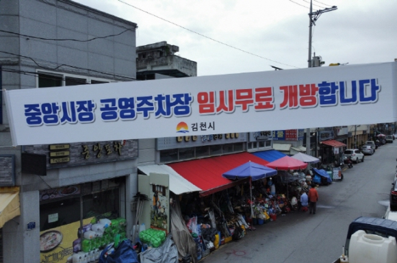 김천시(시장 김충섭)는 2021년 9월 6일부터 중앙시장 내(구 김영권 정형외과 건물 주변)에 조성 중인 공영주차장을 임시 무료 개방하였다. 다가오는 추석 명절을 맞아 예초기 정비 등 중앙시장을 찾는 시민들이 늘어 많은 차량이 몰리고 김천우체국을 방문하는 시민들로 인해 극심한 혼잡이 예상됨에 따라, 공사 중인 공영주차장의 바닥공사가 조기에 마무리하고 중앙시장과 공구상 거리를 찾는 시민들의 편의 제공을 위해 임시로 무료 개방한다고 밝혔다. 중앙시장 공영주차장은 주차공간이 부족한 전통시장 주변의 주차난 해소로 전통시장 이용을 늘리고 코로나19로 지속적인 경기 불황에 어려움을 겪고 있는 지역 소상공인을 지원하기 위하여, 사업비 27억 원으로 지난해 토지 보상을 완료하고 2021년 건축물 철거와 주차장 조성을 추진하여 현재 마무리 사업 중이다.