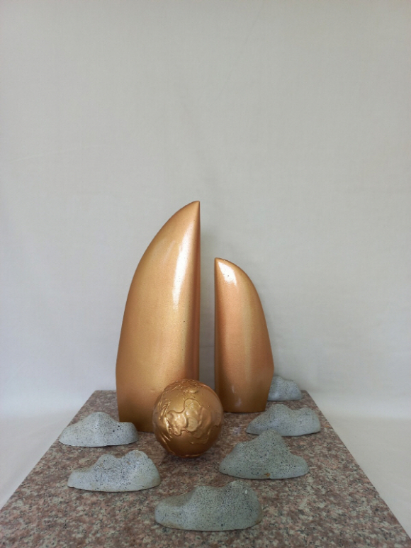 이번 포항우수작가 초대전 ‘숨 고르기·쉬어가기’에서는 해돋이, 연오랑세오녀 등 지역성을 반영한 주제를 포함해 연작 시리즈인 ‘토루소’, ‘기다림’을 통해 기계에 예속된 인체와 현대인의 초상을 브론즈, 돌, 흙, 철 등으로 형상화했다. 작가는 냉혹하고 차가운 현실을 반영하며 날카롭고 냉철한 비판을 담는 동시에 이를 극복하고자 하는 의지와 밝은 미래를 염원하는 희망의 메시지를 자신만의 조형세계에 담고자 했다.