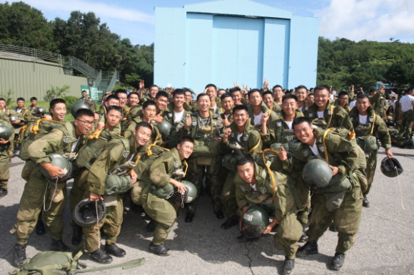 -3사 생도 47기 기본공수 강하에 생도연대장, 현역 아버지 동참-