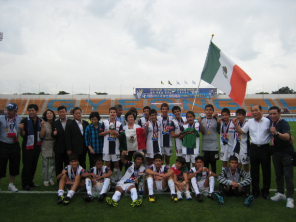 7.22일 최종경기에 멕시코 축구선수단은 우승을 차지하여 기쁨을 함께 나누었다. |
