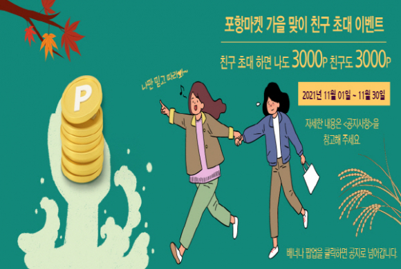 11월 1일 ~ 31일 실시, 친구 아이디 초대를 통해 3000P 적립금