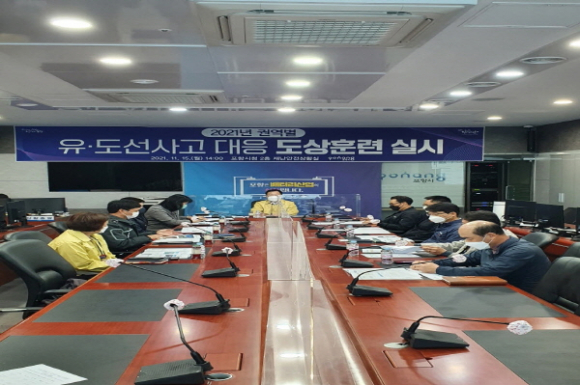 포항시는 최근 ‘위드 코로나’로 유도선 이용객이 증가함에 따라 예기치 않은 사고에 대한 대응능력 강화를 위해 15일 시청 재난상황실에서 유도선 도상훈련을 실시했다.