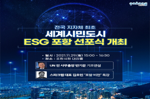 포항시는 29일 전국 지자체 최초로 ‘세계시민도시 ESG 포항’ 선포식을 시작으로 ‘ESG 선도도시’로 도약하고자 한다. 포항시는 왜 기업 중심으로 선포하고 있는 ESG를 선도하고자 하는지 살펴본다.
