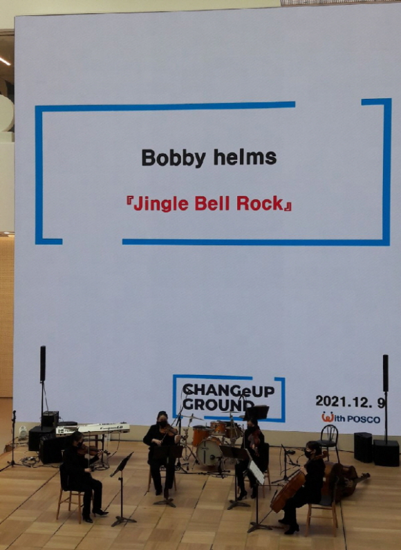 이 날 공연은 현악 4중주로 오스트리아 ‘잘츠부르크 교향곡’이라는 별칭을 가지고 있는 18세기 중·후반에 유행한 기악 모음곡인 모차르트의 ‘디베르티멘토 3번 1악장’으로 시작해서, 영화 ‘그것만이 내 세상’ OST 삽입곡, 독일이 낳은 작곡가 요하네스 브람스의 헝가리 무곡인 ‘Hungarian Dance 5번’의 아름다운 클래식 멜로디에 이어, 영국의 전통 크리스마스 캐롤인 윌리엄 샌디스의 ‘The First Noel’, 바비 헴스의 ‘Jingle Bell Rock’ 등 감성적인 음악들이 체인지업그라운드 중정홀에 세워진 5m 대형 크리스마스트리와 함께 어우러져 곧 다가올 크리스마스와 연말연시의 분위기를 물씬 느낄 수 있게 했다.