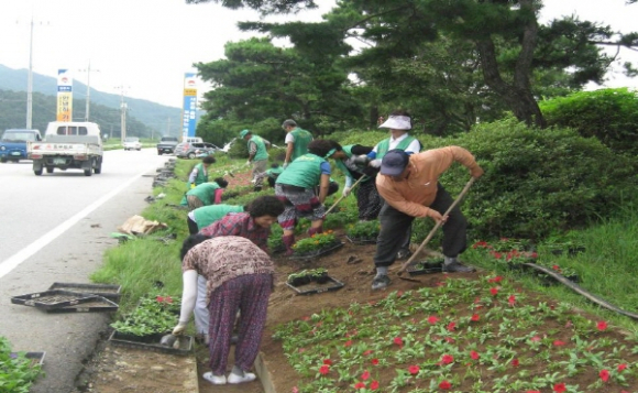 이날 새마을지도자 민경일 외 30명은 우리지역에 아름다운 환경조성을 위해 사루비아 외 3종 5,500여본을 일반국도 59호선 선산경계-배신 연도변(길이:150M, 너비:2M)에 식재하여 연도변이 형형색색의 꽃들로 가득차게 되었다.