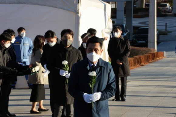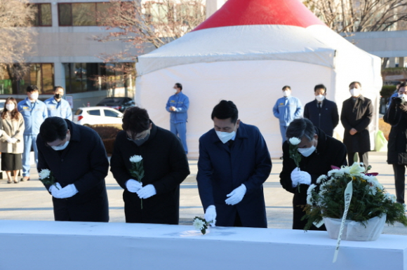 이날 추모식은 유가족, 포스코 임직원, 포항상공회의소, 포항시민 등 400여 명이 참석한 가운데 경건한 분위기 속에서 진행됐다.