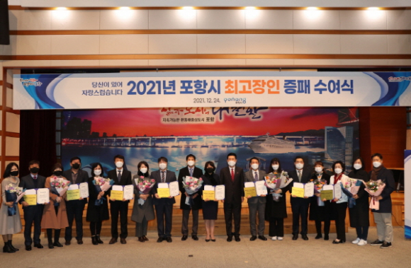 포항시는 24일 ‘2021년 포항시 최고장인 증서 및 증패 수여식’을 시청 대회의실에서 가졌다.