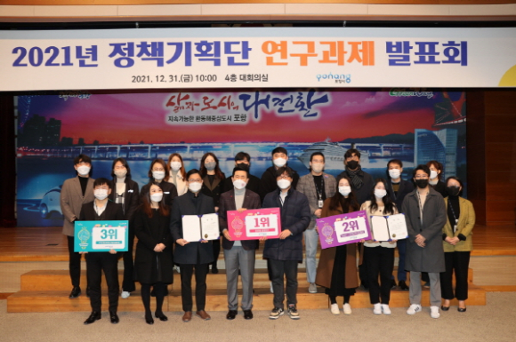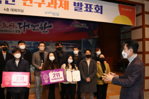 |  | | | ⓒ GBN 경북방송 | | 포항시는 지난 달 31일 시청에서 ‘2021년 정책기획단 연구과제 발표회’를 개최했다. 행사는 50명 이내로 참석인원을 제한하고 사회적 거리두기 지침을 준수해 진행됐다.