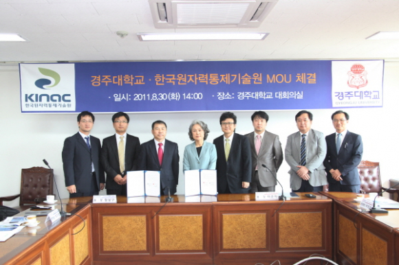 경주대학교(총장 이순자)와 한국원자력통제기술원(원장 장상구)이 30일 오후 2시 경주대학교(본관 대회의실)에서 경주대 이순자 총장과 기술원 장상구 원장을 비롯한 양측 관계자가 참석한 가운데 산학협력 MOU를 체결해 주목되고 있다.