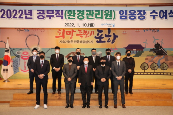 포항시는 10일 시청에서 2022년도 공무직 환경관리원 공채 최종합격자 11명에게 신규임용장을 수여했다.