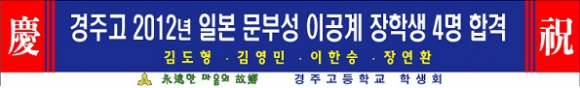 한국과 일본 문부과학성 그리고 일본대학사업협의회가 주관하는 일본이공대학 유학 장학생 선발 시험이 지난 7월 30일 서울 덕수고등학교에서 실시 되었다. 전국에서 150명 선발했는데 경북에서는 5명의 합격자 중 4명이 경주고등학교 학생들이었다.