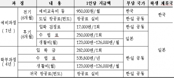 ◈ 장학금 지급 내역(한·일 공동 각각 50% 부담)