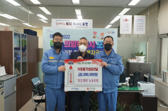 TCC한진 노동조합은 18일 이웃돕기 성금 200만 원을 포항시에 기탁했다.