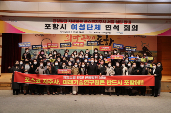 |  | | | ⓒ GBN 경북방송 | | 포항시는 18일 포항시청에서 균형발전을 역행하는 포스코에 강경 대응하기 위해 포항시 여성단체 32개 회장단이 참석한 가운데 긴급 연석회의를 개최했다.