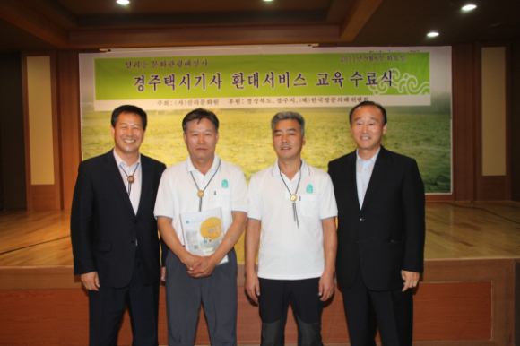 KTX 경주개통, 경주세계문화엑스포 개최 등 관광객들의 택시 이용이 늘어날 것에 대비하여 (사)신라문화원 주관, (재)한국방문의해위원회 후원으로 진행된 2011 경주택시기사 환대서비스 교육 수료식이 6일(화) 오전 10시 30분 신라문화체험장에서 최양식 경주시장, 김일헌 경주시의장, 정종복 경주시 전 의원, 이경동, 이옥희, 박귀룡, 서호대 시의원 등 주요 내빈과 교육수료생 40여명이 참가한 가운데 열렸다.