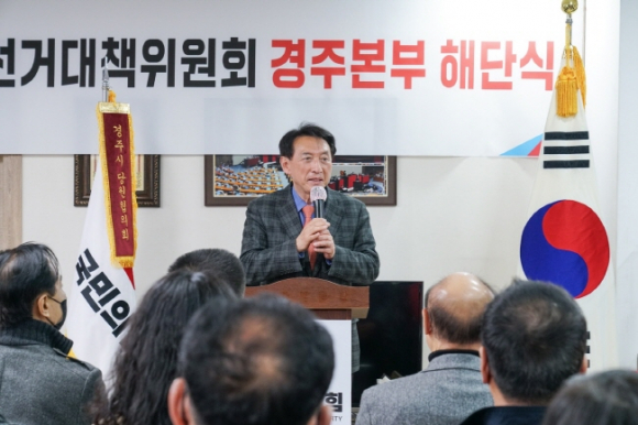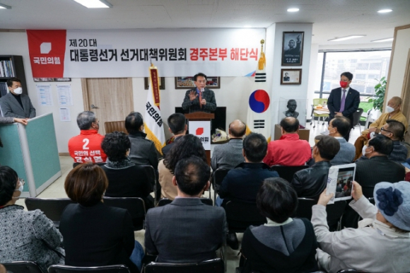 국민의힘 경상북도 선거대책위원회 경주본부(상임선대위원장 김석기 국회의원)는 오늘(3/11) 오후 2시 국민의힘 경주당원협의회 사무실에서 제20대 대통령선거 선거본부 해단식을 가졌다.