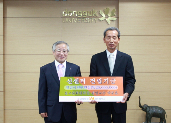 박무흠 교수는 독실한 불교 신자로, 동국대 경주캠퍼스가 불교 세계화를 위하여 추진하는 선센터 건립을 위해 김영종 동국대 경주캠퍼스 총장에게 기금을 전달한 것이다.